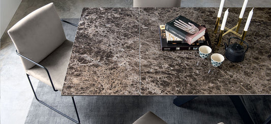 Visit our showroom to see the Cartesio Shaped Extendable Dining Table or contact us to discuss more.