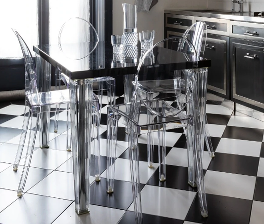 He is best known for his 'Louis Ghost Chair' a transparent polycarbonate chair, which in typical Starck style, is a witty interpretation of the famous baroque Louis XVI armchair.