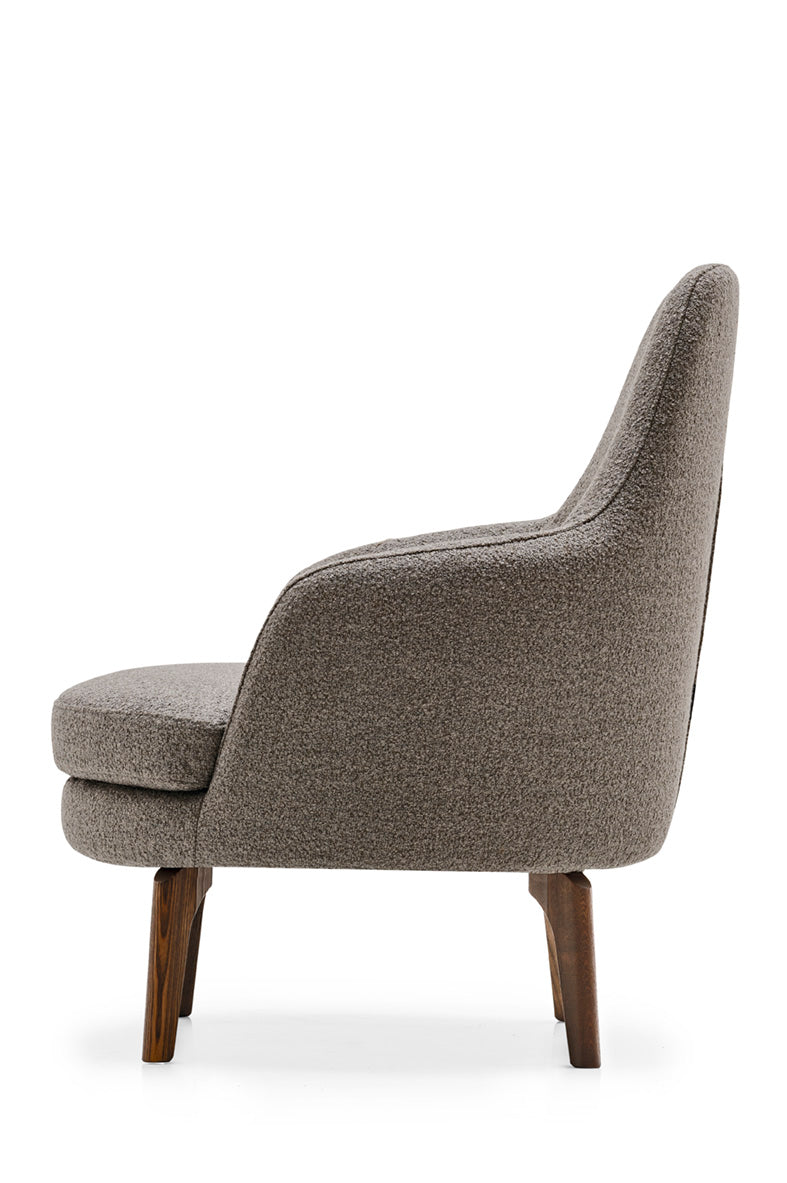 Medea – An armchair showcasing a classic design, supported by four separate ash wood legs and a seat covered in fixed upholstery.