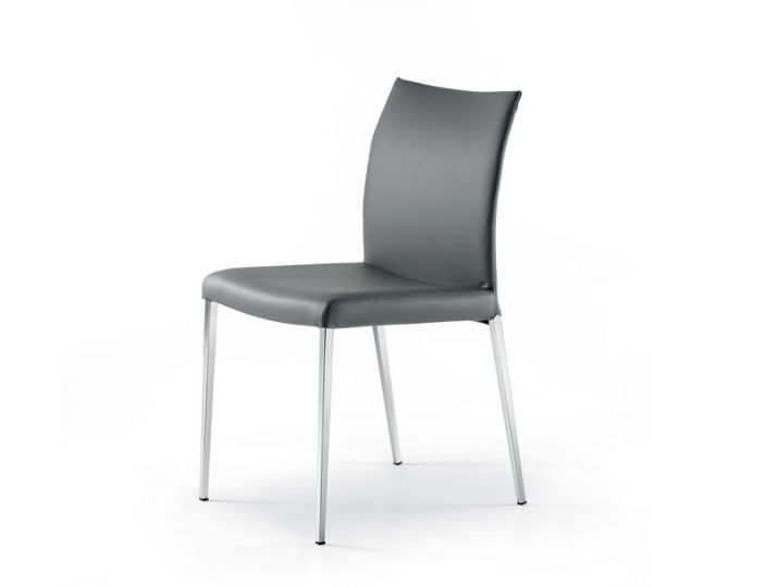 Chair with a steel structure in chromed or black chrome, orange fluo, white, black, graphite, or silver metal finish. Non-removable cover in synthetic leather (60% PVC, 30% cotton & 1% polyurethane) or Soft Leather.