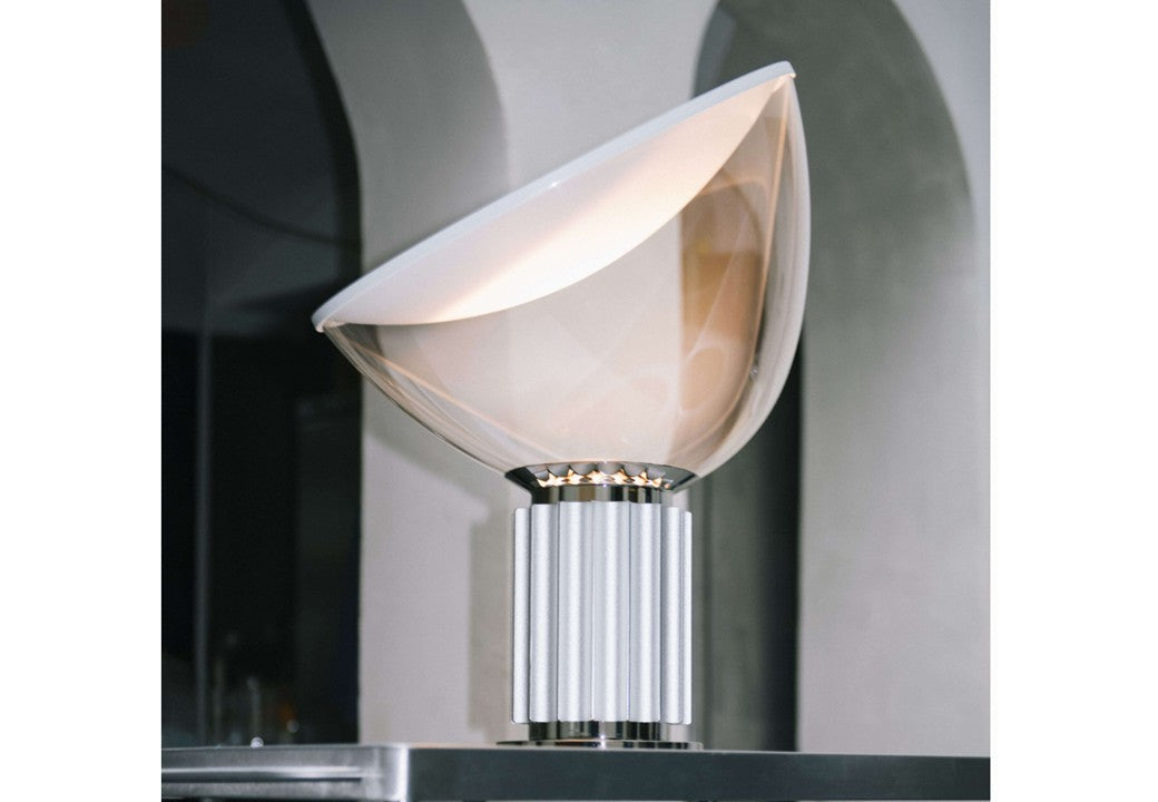 Achille Castiglioni during an interview about Taccia in 1970 said: "we regard it as the Mercedes of the lamps, a symbol of success: maybe because it looks like a classic column. Of course, we weren't concerned about prestige when we designed it. We intended to obtain a surface which would remain chilly."