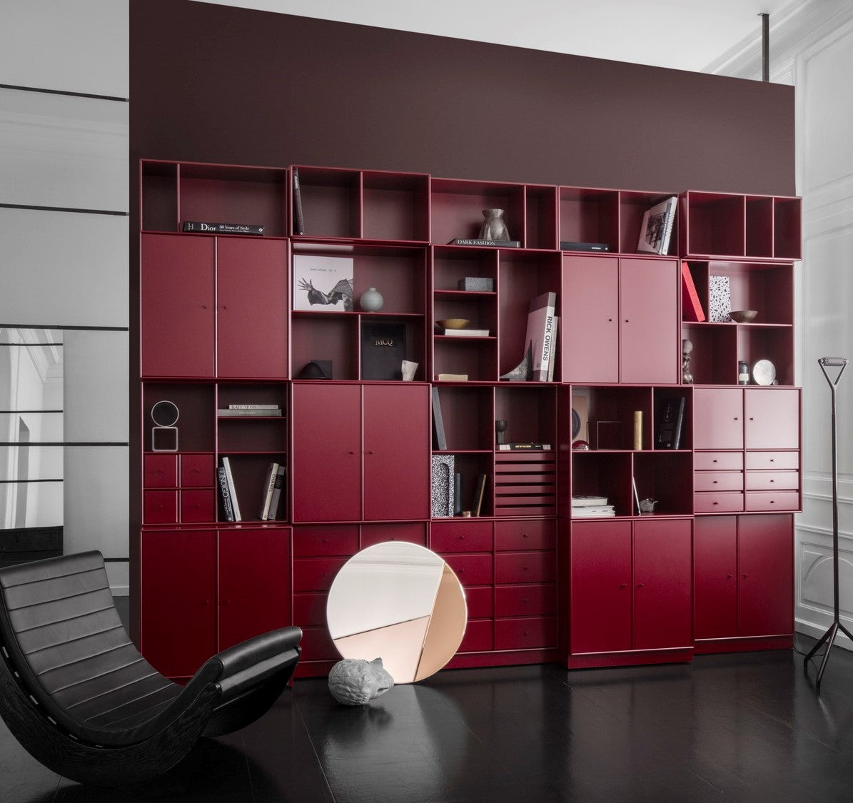 Designed by Peter J. Lassen the doors are made by MDF as well as the interior shelves. If the need for storage changes modules can be rearranged and function separately.